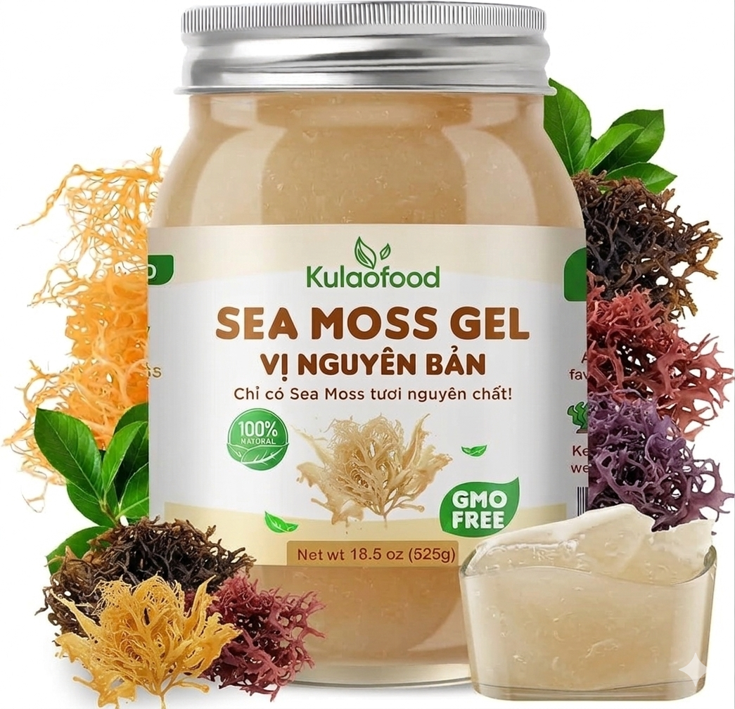 Sea Moss Gel Nguyên Chất được chế biến từ rong biển Sea Moss tự nhiên – một loại rong biển nổi tiếng giàu khoáng chất và vitamin.